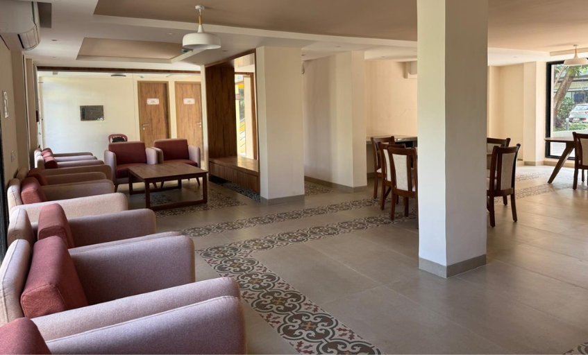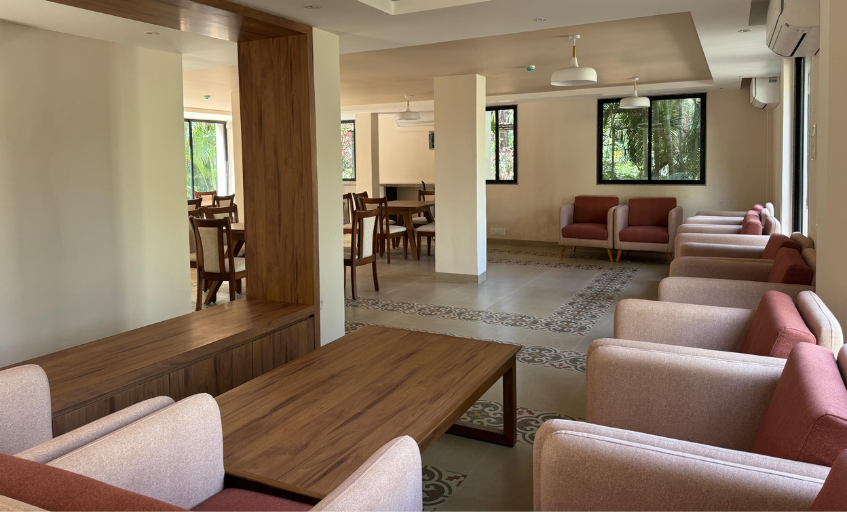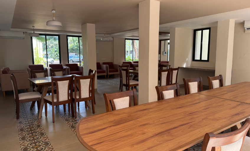 Spacious, well furnished cafeteria ideally suited for breakfasts & lunches. Seating capacity of upto 75 people. Includes tables, chairs, wash area, etc.