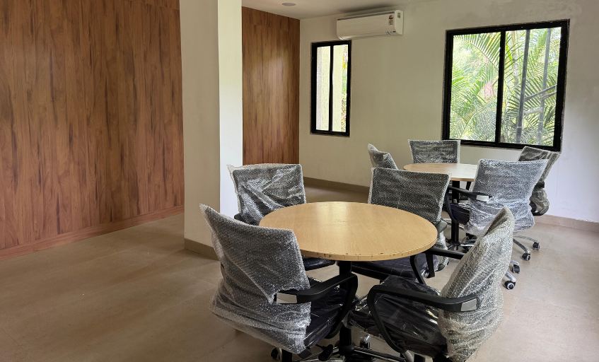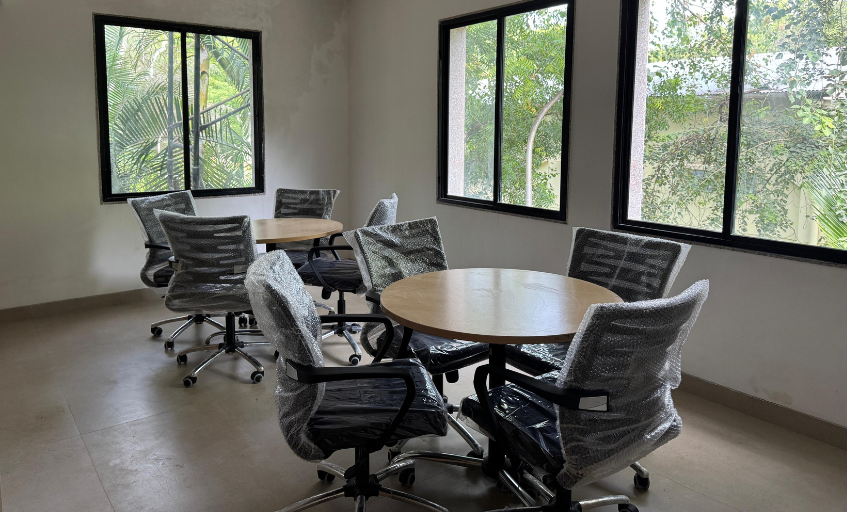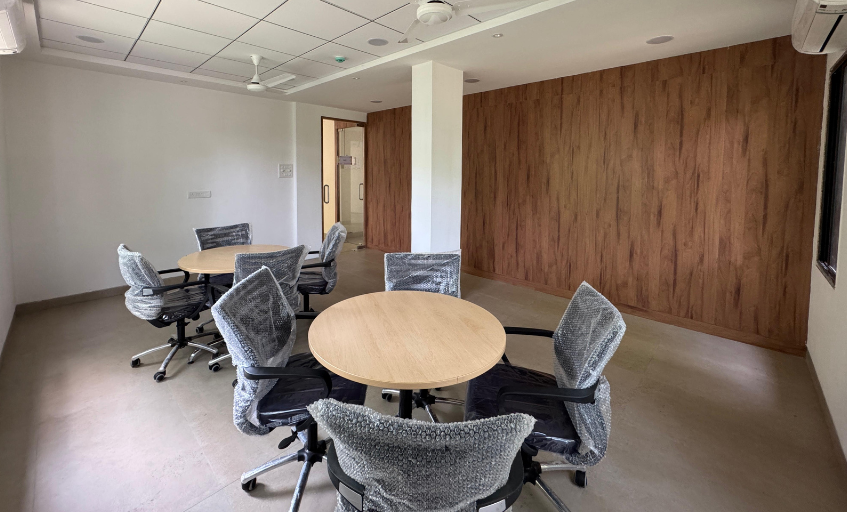 AC room with comfortable seating arrangement with cushioned stack chairs. Ideal for small gatherings, Networking forums, brainstorming sessions etc